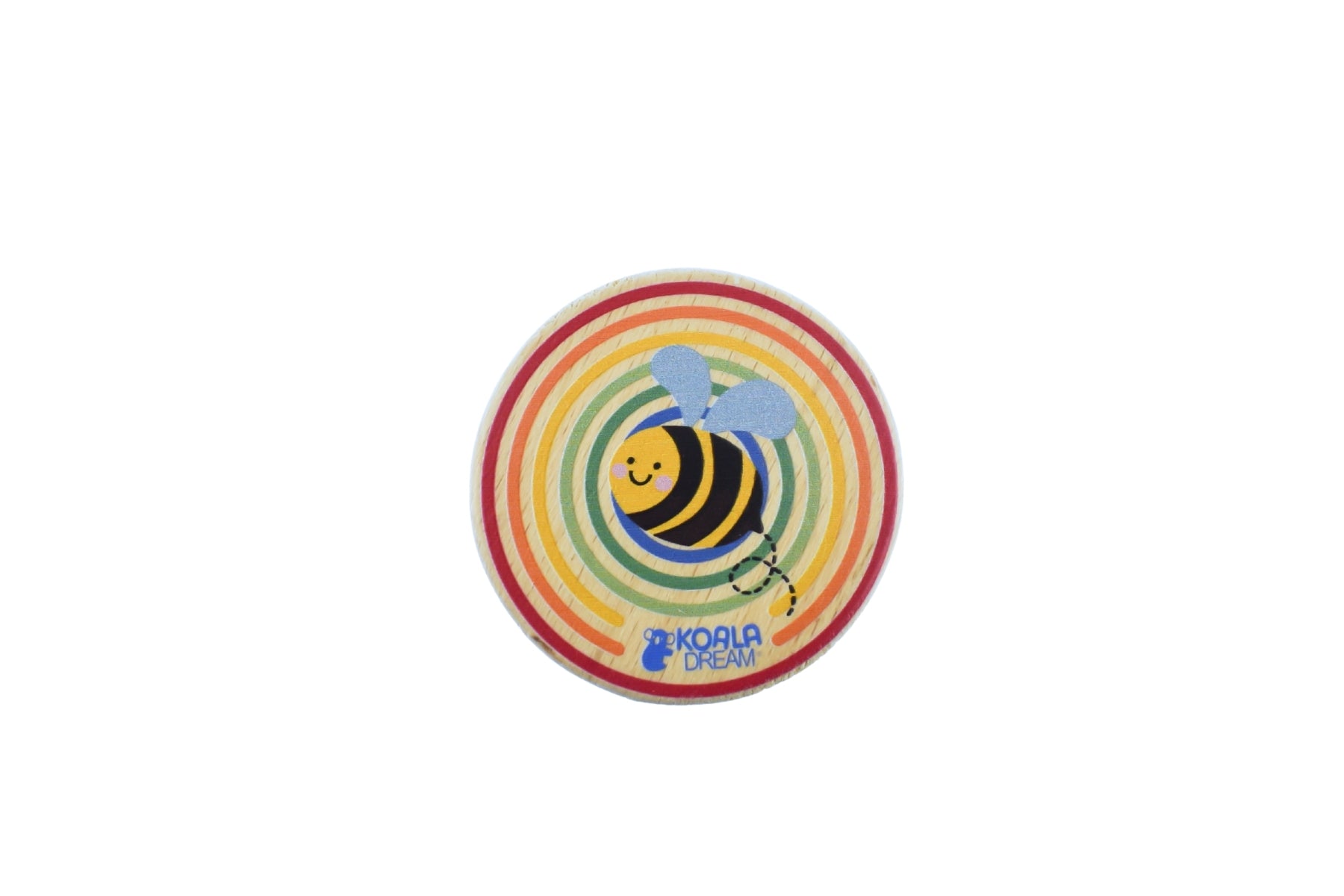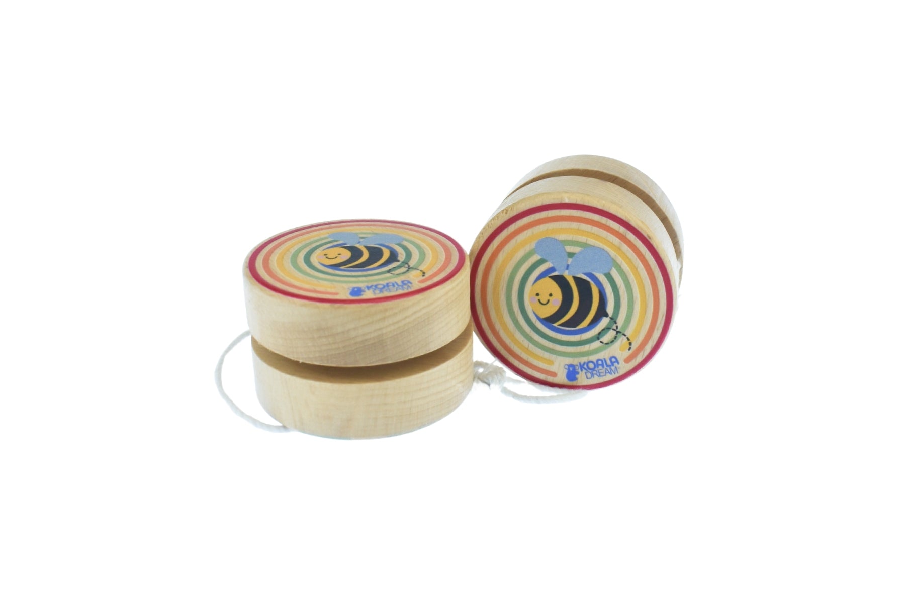 The BUZZY DAYS BEE RAINBOW YO-YO 2PC is a fantastic addition to any playroom, encouraging hours of open-ended fun. Introducing the Koala Dream Buzzy Days Bee Rainbow Yo Yo, where vibrant fun and learning buzz together in a swirl of colour. Dive into a whirl of whimsy with our Buzzy Days Bee Rainbow Yo Yo, available in two enchanting designs: a triangular rainbow spiral and a circular rainbow spiral, each featuring an adorable, buzzing bee. Crafted from FSC certified materials and painted with child safe, non toxic paints, these yo yos are not just a delight to the eyes but also safe for playful hands. Each twirl and spin of the yo yo is not just fun, it is a playful way to boost hand eye coordination, enhance fine motor skills, and introduce the basics of timing and rhythm. With every joyful spin, kids will be learning and laughing, making the Buzzy Days Bee Rainbow Yo-Yo from Koala Dream the perfect blend of playful entertainment and educational enrichment. Price for a set of 2 yo-yos. one of each design.