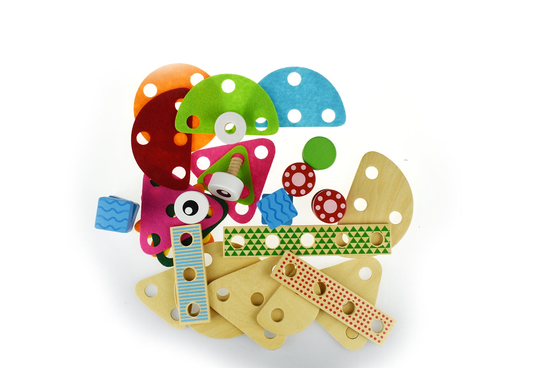 Your little one will love exploring the world with the CONSTRUCTION SET-SPRING INSECT. Kids loves to make things. This spring insect construction set is loaded with wooden and felt pieces. Now they can construct to their hearts content. Putting things together enhances their creativity, problem solving skills and aids fine motor skills and hand/eye coordination (so important during their early years).