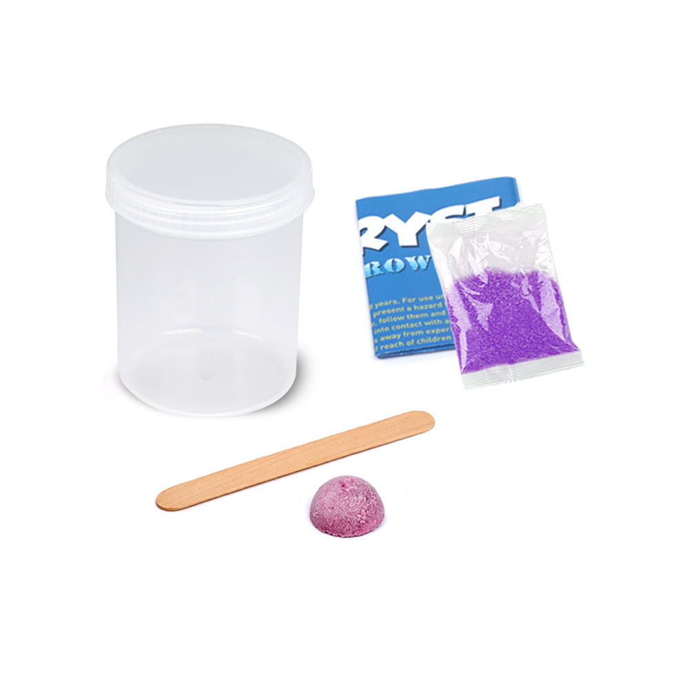 The CRYSTAL GROWING KIT 6 COLOUR ASSORTED is a fantastic addition to any playroom, encouraging hours of open-ended fun. Introducing the Crystal Growing Kit by Kaper Kidz, a captivating journey into the world of crystals. Choose from six assorted colors, including Elegant Blue, Pure White, Hot Red, Vigorous Yellow, Dream Purple, or Relaxing Green, and embark on an enchanting crystal-growing adventure. Each kit comes complete with all the necessary tools, instructions, and materials to grow your very own crystal. Set up the plastic container for growing, use the wooden muddler to prepare the solution, and carefully introduce the seed crystal. Watch in awe as your crystal begins to form and grow. The kit includes special crystal powder designed to optimize growth conditions, ensuring a successful crystal-growing experience. While crystal sizes may vary based on growing conditions, this kit typically produces crystals with an average diameter of 6cm. Unlock the secrets of crystal growth and witness the mesmerizing transformation from solution to radiant crystal. The Crystal Growing Kit by Kaper Kidz is an engaging and educational activity that combines science and beauty, providing a hands-on experience for curious minds of all ages. Let your imagination sparkle as you grow your very own dazzling crystals.