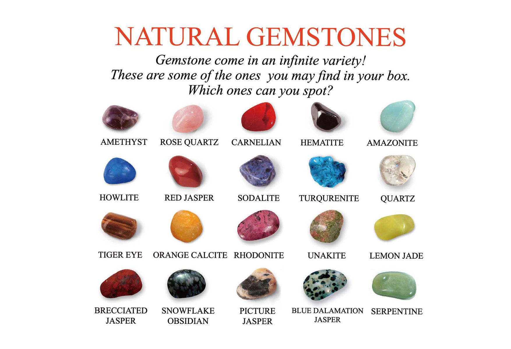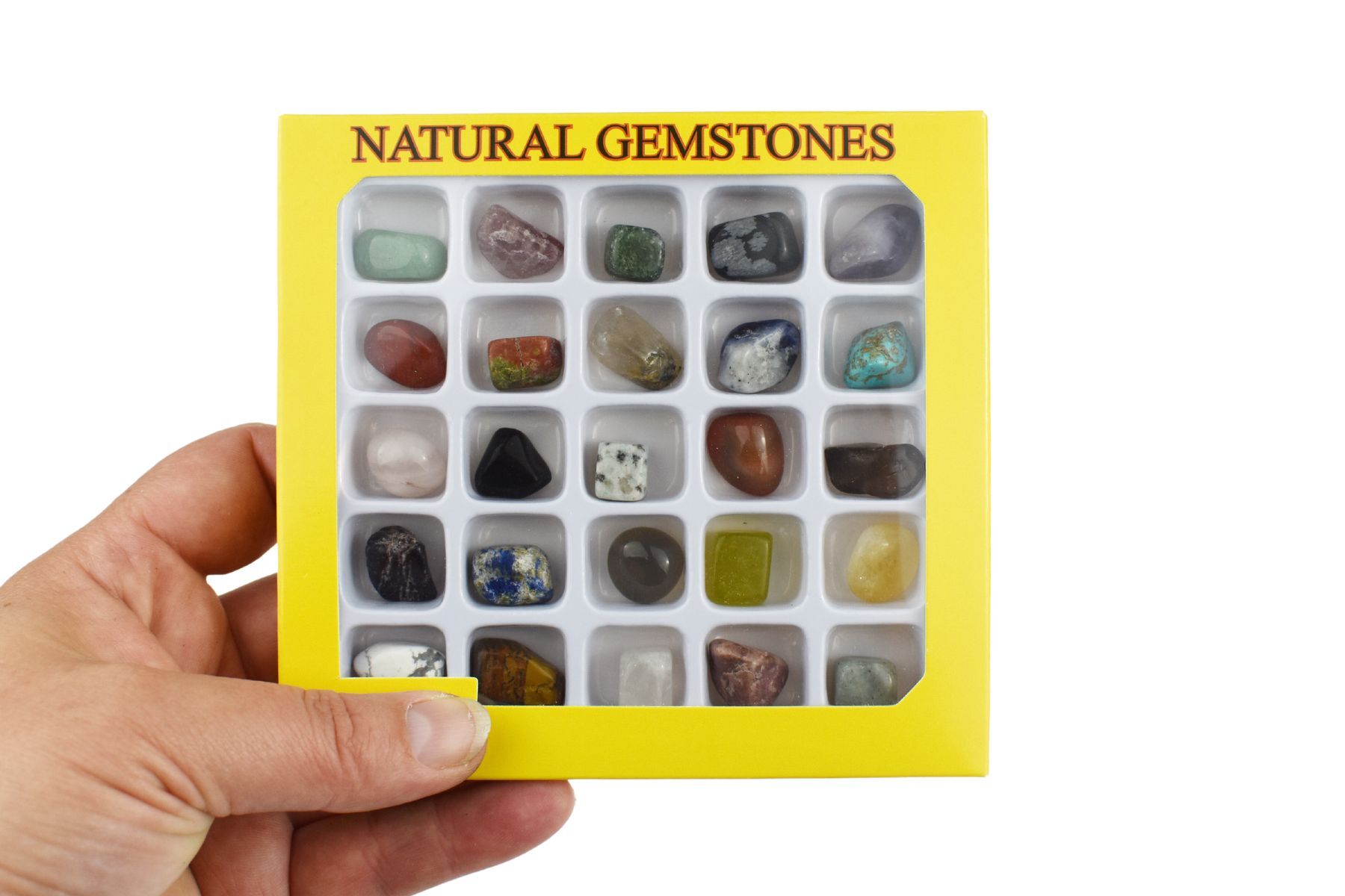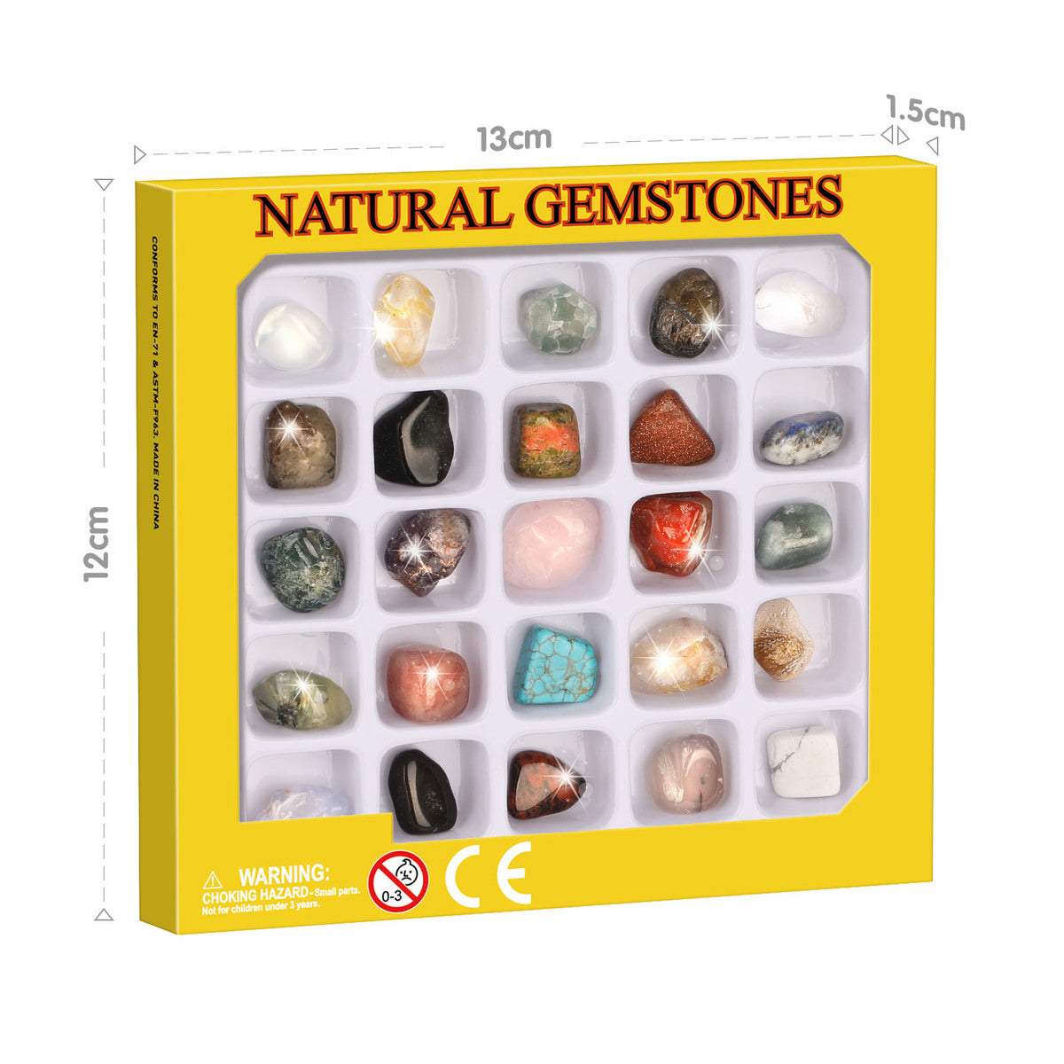 The GEMSTONE SELECTION BOX 25PCS is a fantastic addition to any playroom, encouraging hours of open-ended fun. Introducing the Gemstone Selection box by Kaper Kidz, a treasure trove of exploration and wonder. Unveil the captivating beauty of the earth with this collection box, featuring 25 different tumbled semi-precious gemstones to ignite your curiosity. Marvel at the vibrant colours, unique patterns, and dazzling luster as you hold each gemstone in your hands. With such a diverse assortment, you'll discover an array of treasures waiting to be explored. To enhance your gemstone journey, each stone is accompanied by a picture on the back. Match your gemstones to their corresponding images and names. Expand your knowledge and become a gemstone connoisseur while building your own stunning collection The Ultimate Gemstone Collection by Kaper Kidz offers an educational and awe-inspiring experience for gemstone enthusiasts of all ages. Delve into the wonders of the earth and let the magic of gemstones captivate your imagination.