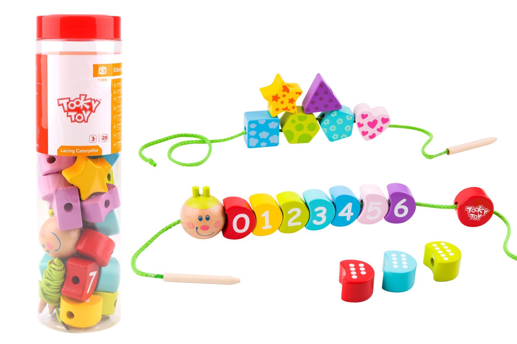 Teach turn-taking and social skills in the most enjoyable way with the LACING CATERPILLAR. These wooden lacing Caterpillar from Tooky Toy will help build fine motor skills and animal recognition, which are vital for early childhood development. Your child will have fun learning to lace a thread through these cute farm animals, building hand dexterity, hand-eye coordination and developing concentration and focus. Featuring cute figurines, these caterpillar segmentscan also be used to learn counting and number sequencing. Painted in bright, cheery colours, these lacing sets are a joy to learn and play with. Each wooden Lacing Caterpillar set from Tooky Toys is made from timber, finished to the highest quality and painted in child safe, non toxic paint.