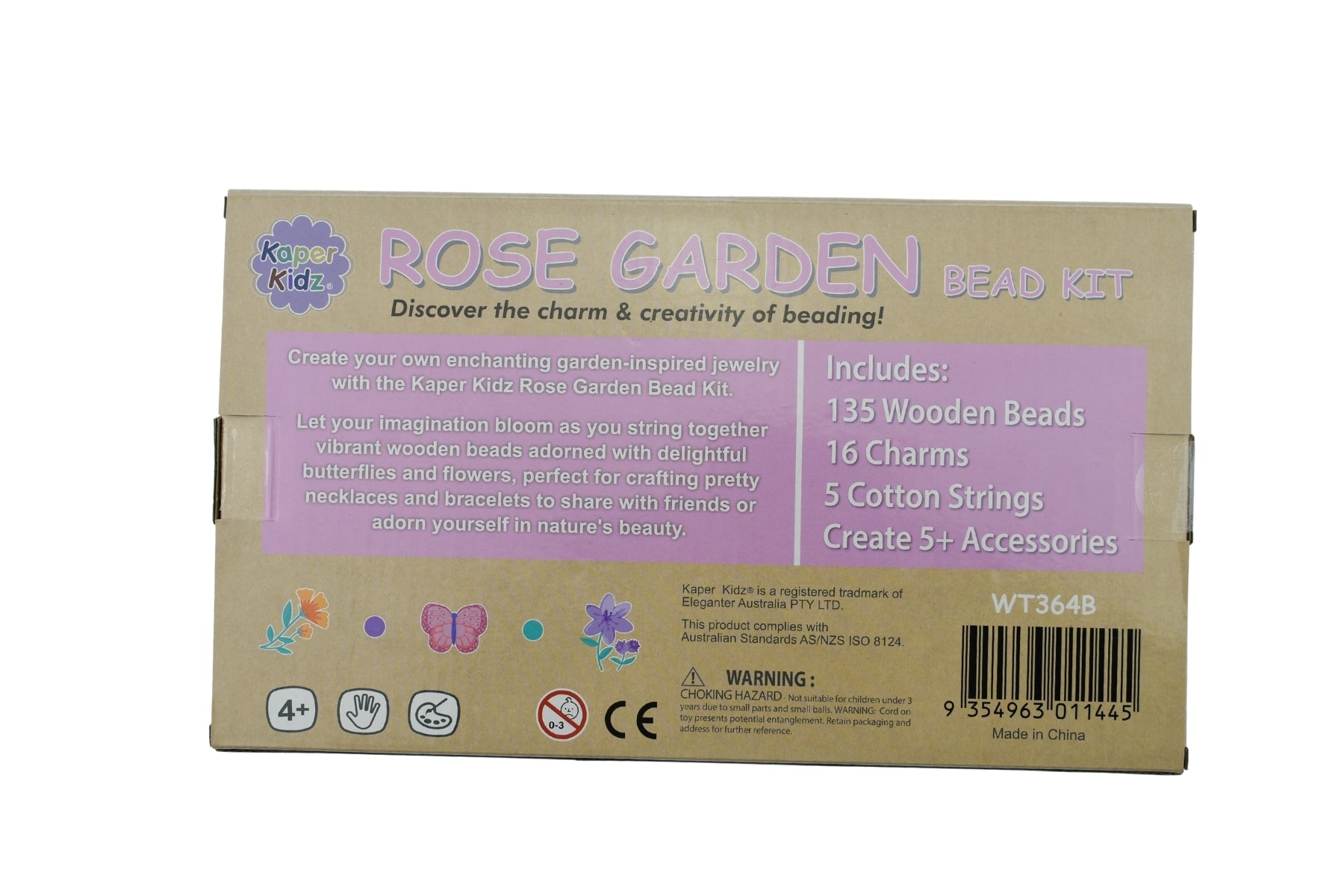 Spark your child's problem-solving skills with the engaging ROSE GARDEN BEAD KIT. Explore endless creativity with the Rose Garden Bead Kit from Kaper Kidz. This delightful kit offers a wide array of possibilities for crafting unique jewelry pieces. With over 150 beads and 5 lengths of string included, children can experiment with various bead combinations and stringing techniques to design bracelets, necklaces, and more. The kit features 135 wooden beads in assorted shapes, sizes, and colours, allowing kids to mix and match to their heart's content. Additionally, the 16 charming garden-themed charms add an extra touch of whimsy to each creation. Whether crafting for themselves or as thoughtful gifts for loved ones, children will enjoy hours of imaginative fun and self-expression with this versatile bead kit.