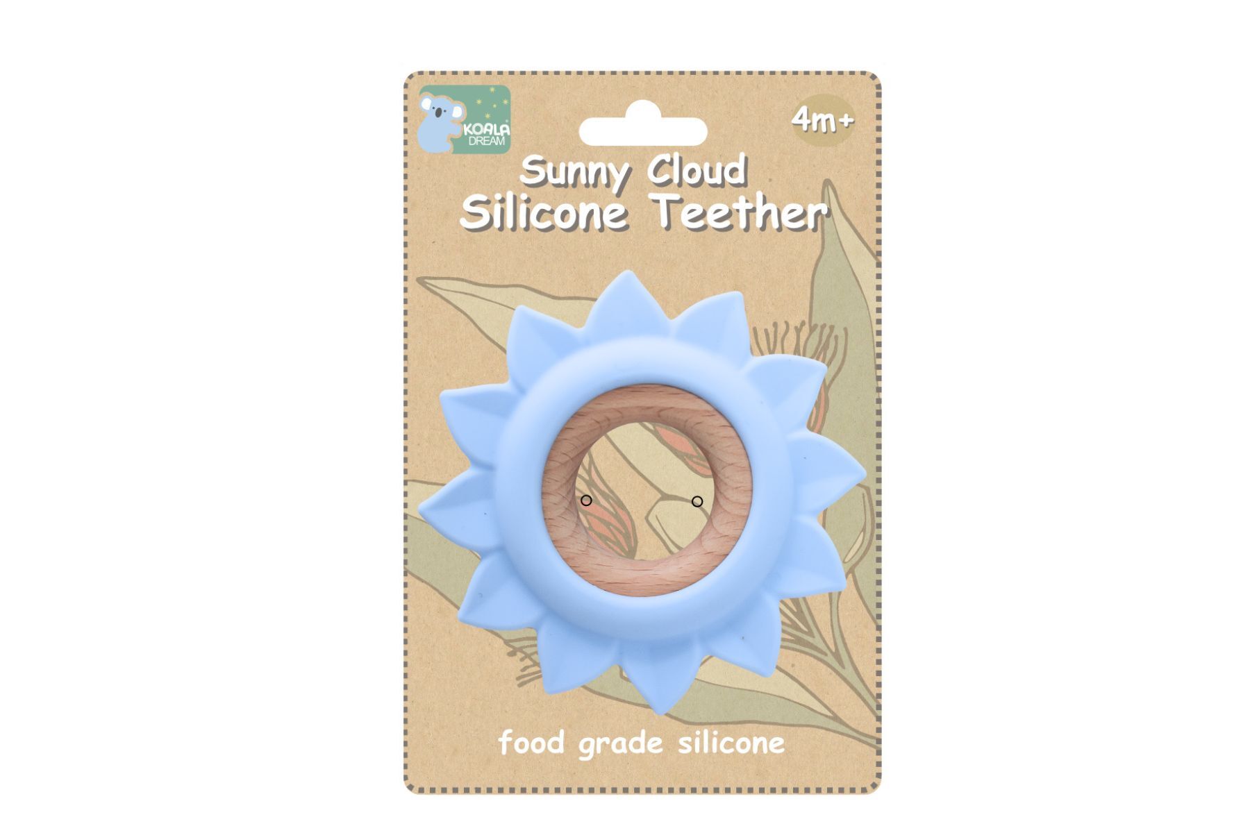 Soothe your little one's sore gums with the gentle relief of the SILICONE TEETHER SUN BLUE.