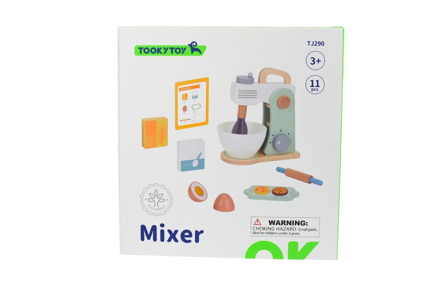 Spark imagination and creative play with the versatile WOODEN BAKING MIXER SET. Experience the joy of baking with the Wooden Mixer Set from Tooky Toy, where creativity meets culinary delight! This delightful set invites young chefs to embark on imaginative baking adventures right in their playroom. At the heart of the set is a charming wooden tabletop mixer, complete with a handle on top that spins the whisks, just like a real mixer! Watch as your little one adds ingredients from the wooden flour and sugar sets, cracks the wooden egg, and rolls out dough with the included rolling pin. With the recipe included, budding bakers can whip up their very own culinary creations. After mixing and baking, enjoy the satisfaction of creating two delicious pretend play wooden cookies, ready to be shared and savored. The soft colors and charming design of the set make it an enchanting addition to any play kitchen or pretend bakery. Crafted from high-quality timber and painted with child-safe, non-toxic paints, parents can rest assured that this Wooden Mixer Set prioritizes safety while sparking endless hours of imaginative play. Encourage your little chef to explore the world of baking with this delightful and durable toy from Tooky Toy!